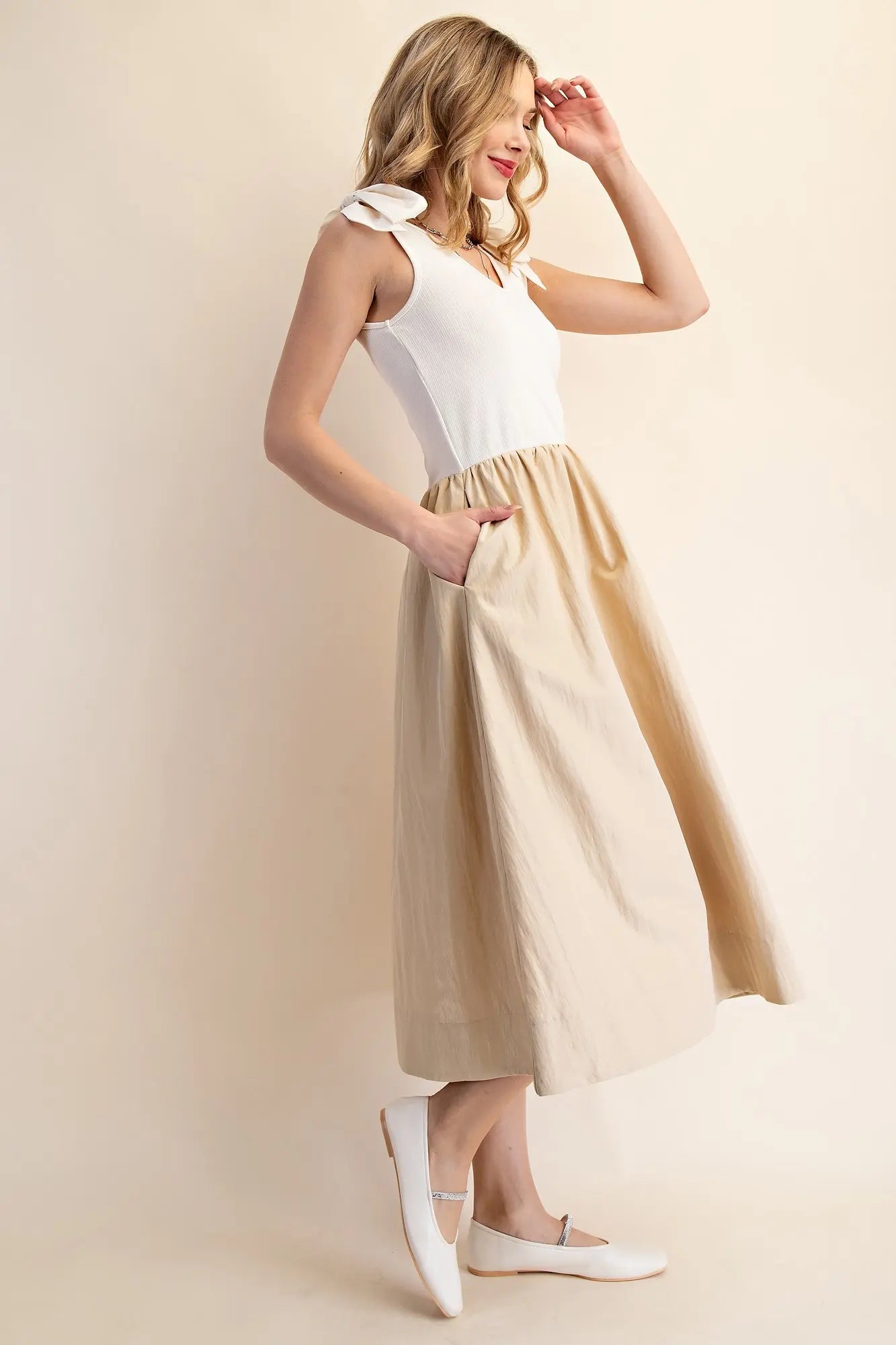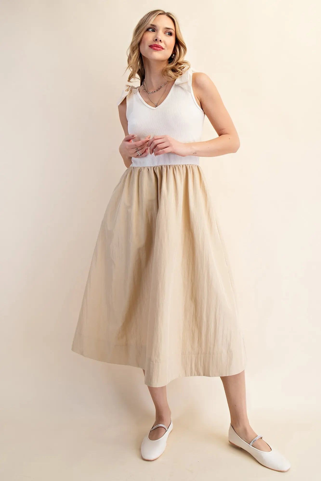 Glam | V-Neck Contrast Ribbon Tie Midi Dress