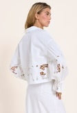 Striking cutwork embroidery showcasing intricate floral motifs runs along the sleeves and bottom hem. Perfect for elevating any outfit, the TASMIN TOP adds a touch of