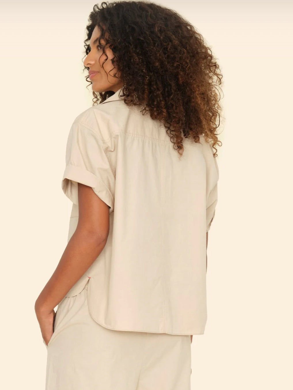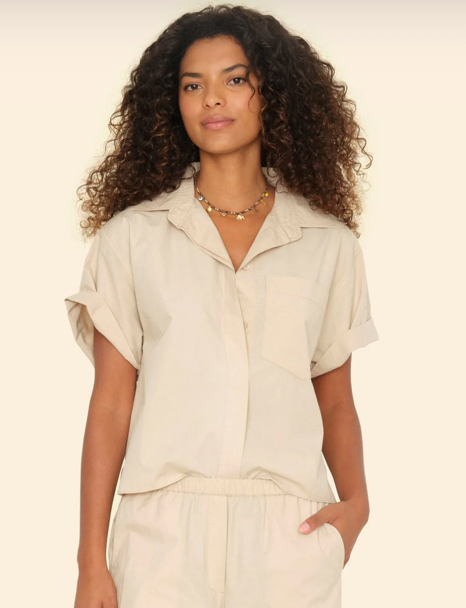 Easy does it. Drake is made in our new crisp paper poplin with a refined feel. This button-front shirt features a hidden placket, rolled sleeves, left chest patch pocket, and a high low shirttail hem.
